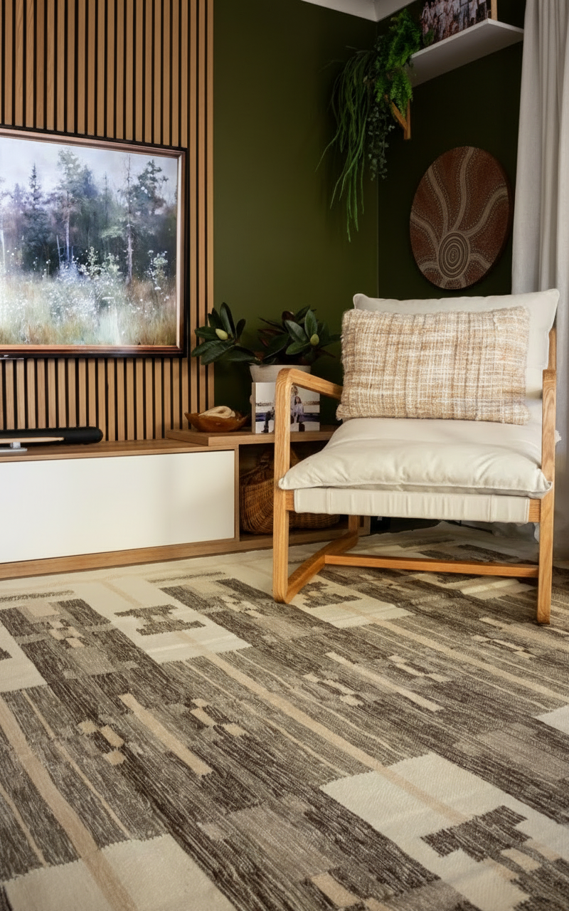 Our Grey & Sage Handmade Flatweave Area Rug can easily transform your space. Crafted from New Zealand Wool, it features a reversible geometric pattern in soothing grey and sage tones. Perfect for those who love a soft rug under their feet, ethically handmade, kids friendly, This durable, easy-to-clean rug is perfect for any room. Add style and warmth today—limited stock available!