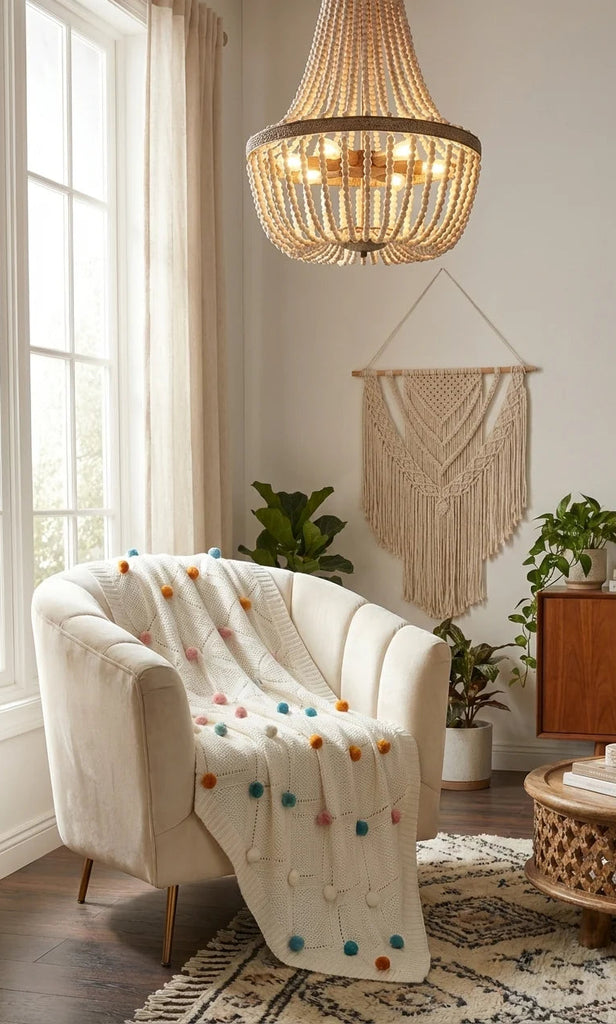 Matching pillows available- https://www.richclassdecor.com/products/pom-pom-pillows